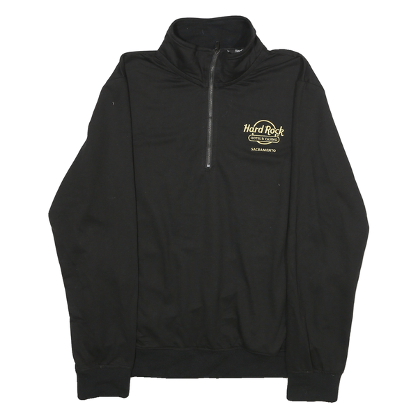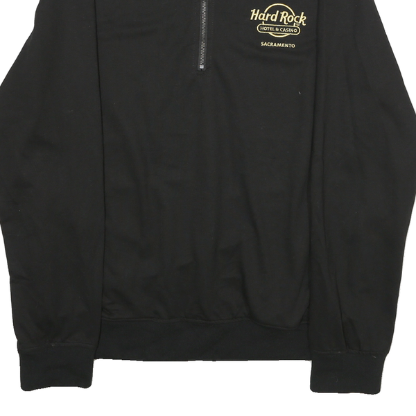 HARD ROCK CAFE Mens Black 1/4 Zip Sweatshirt L Polyester Blend Pullover