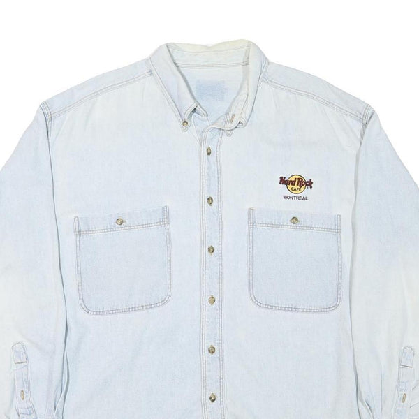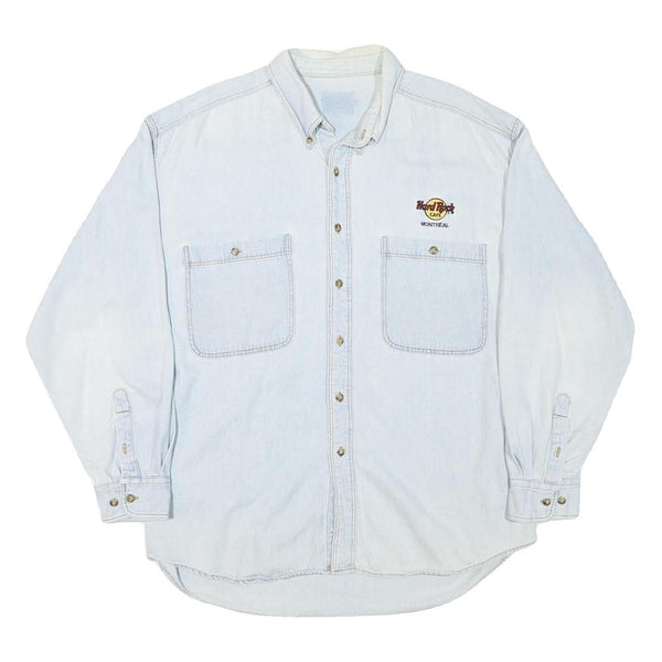 Hard rock cafe mens light blue denim shirt l cotton blend long sleeve relaxed