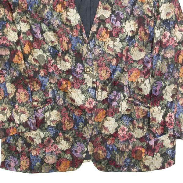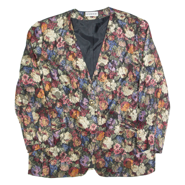 HARDOB Womens Blazer Jacket Black Viscose 90s Floral L
