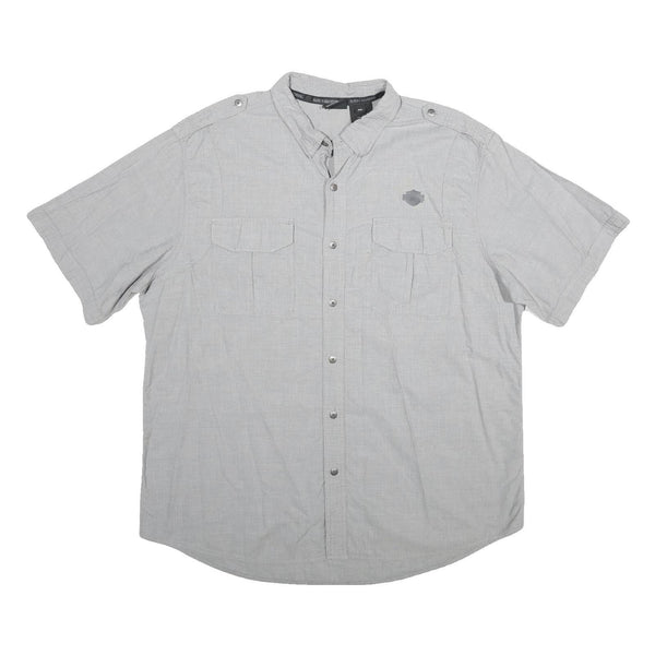 HARLEY DAVIDSON Mens Grey Cotton 2XL Short Sleeve Shirt Motorcycle Logo Casual