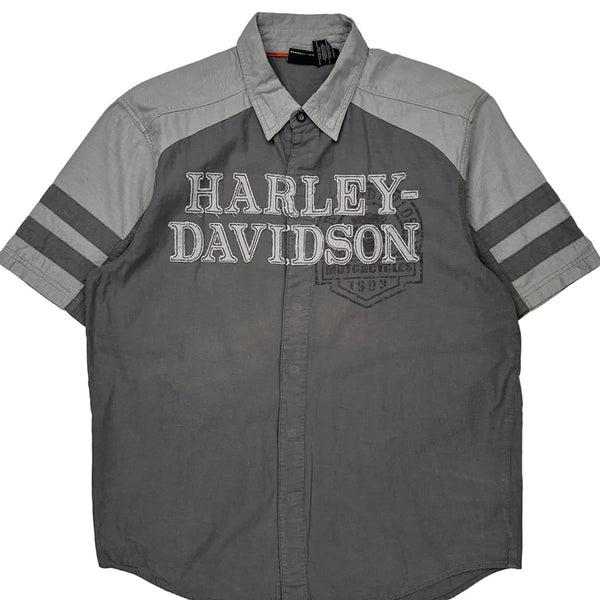 Harley davidson spellout short sleeve shirt - large grey cotton