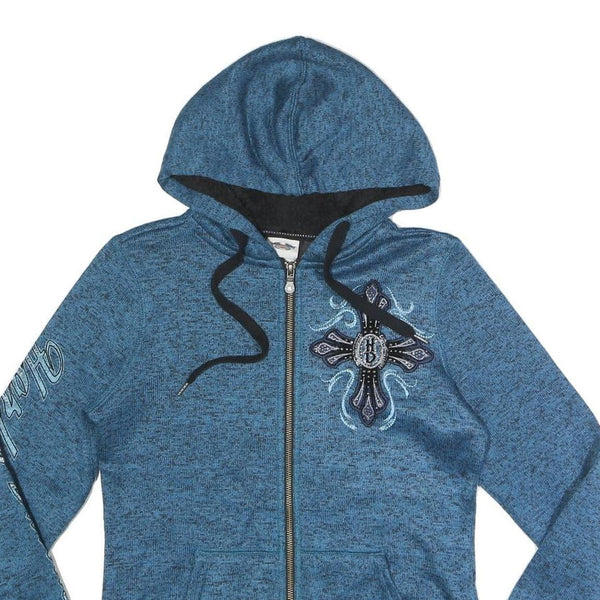Harley davidson womens blue zip up hoodie jacket m polyester cross graphic