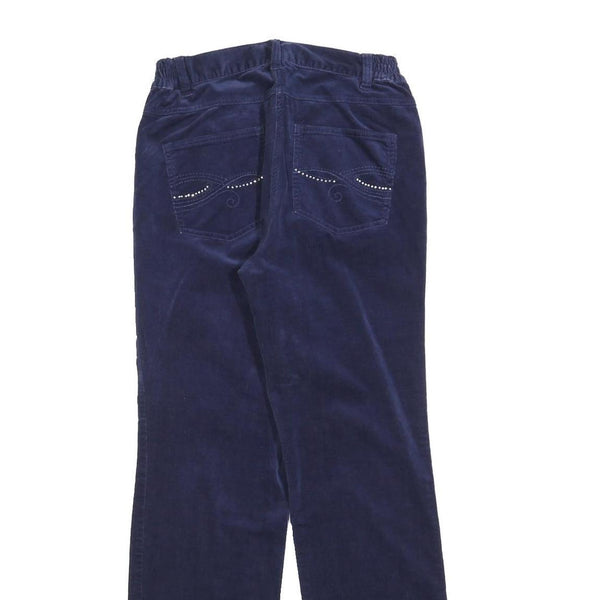 HELENA VERA Womens Cotton Blend Navy Regular Straight Trousers W28 L30 Stylish