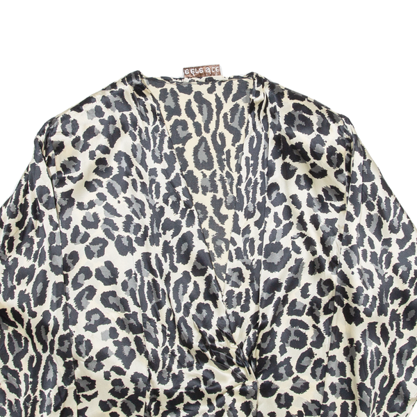 HELENE SIDEL Womens Wrap Blouse Beige V-Neck Long Sleeve Crazy Pattern M