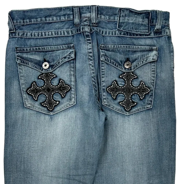 Helix Jeans, fit a 36″ Waist and 30″ inseam.