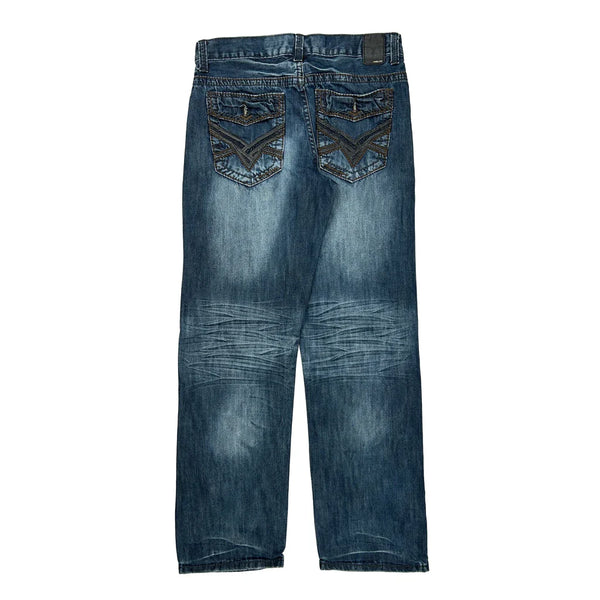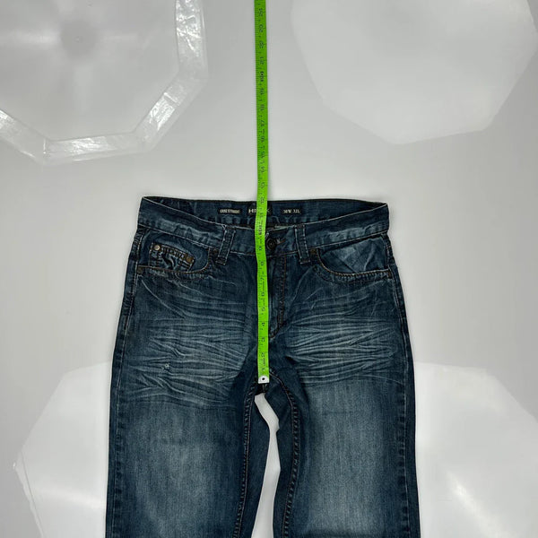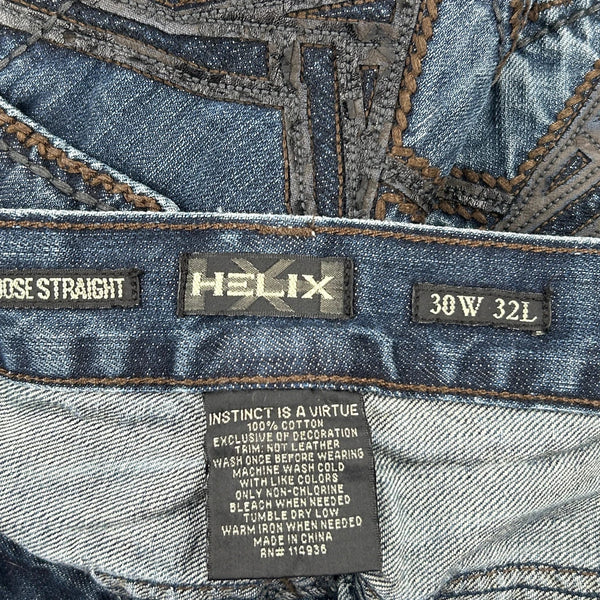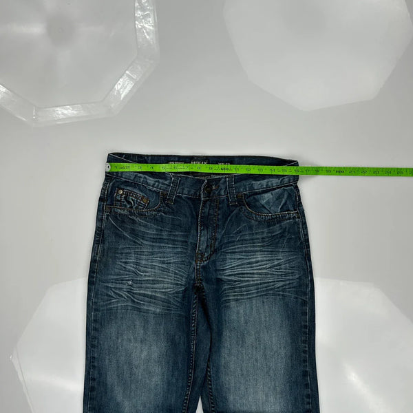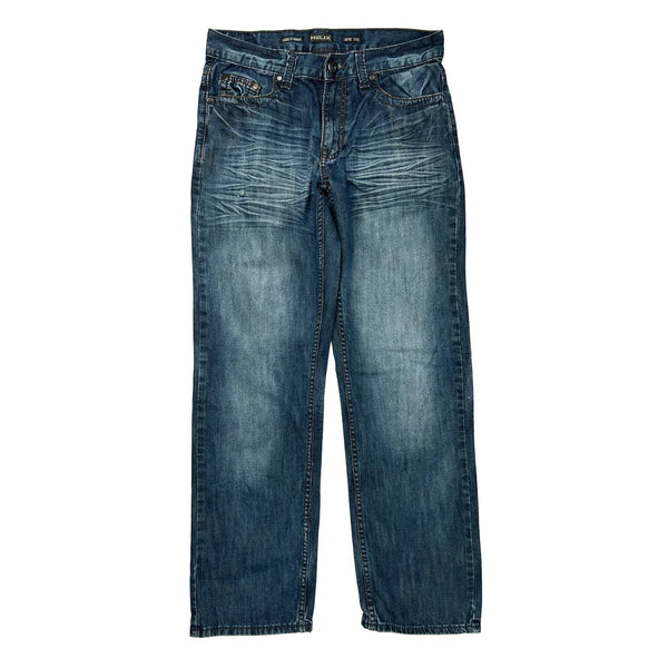 Helix Jeans, fit a 32″ Waist and 32″ inseam.