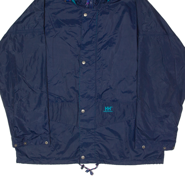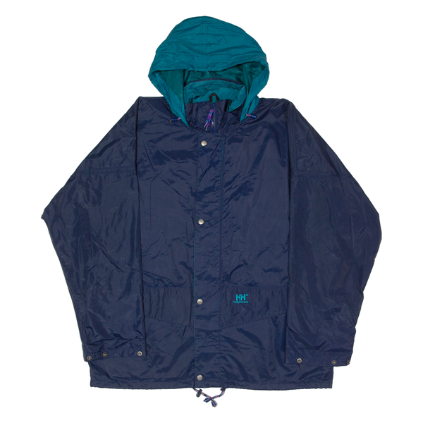 HELLY HANSEN Mens Rain Coat Blue 90s Hooded XL