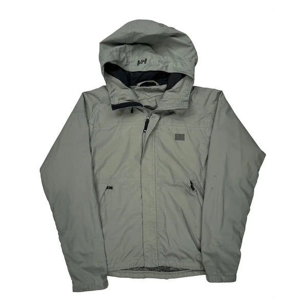 Light Grey Windbreaker With Hood, Helly Hansen Logo On Chest.