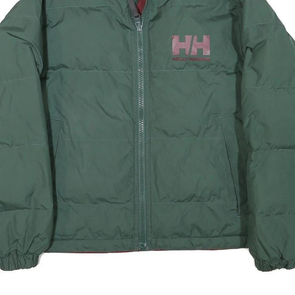 HELLY HANSEN Womens Green & Burgundy Puffer Jacket M Polyester Zip Casual