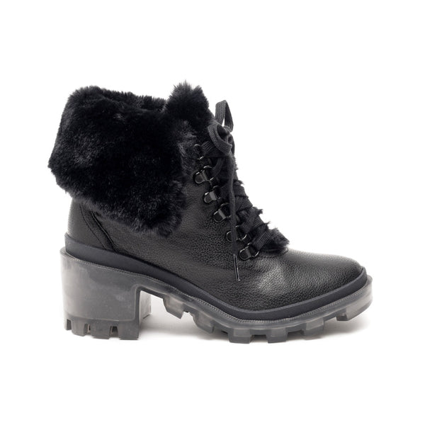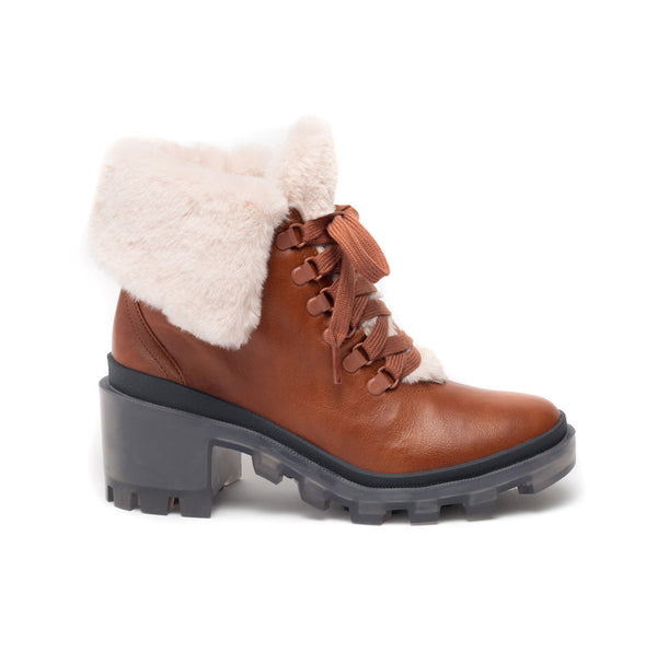 Struggle with cold feet? Not any more thanks to our Henley. These vegan leather booties are lined with warm sustainable, vegan fur so there are no cold feet when it comes to purchasing these or wearing them. Detailed with matte rubberized hardware and a lace-up front, this modern hiker boot is crafted to go with anything in your closet.