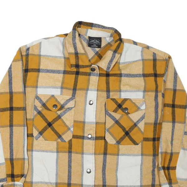 HFX Mens Yellow & White Check Shirt M Long Sleeve Button Closure Cotton Blend