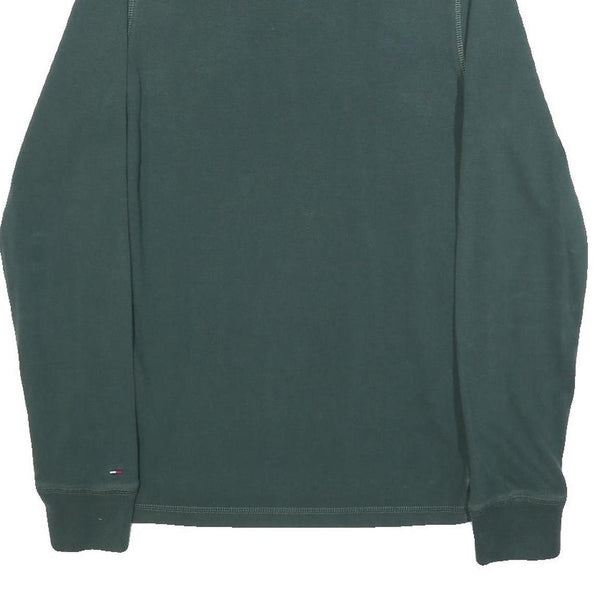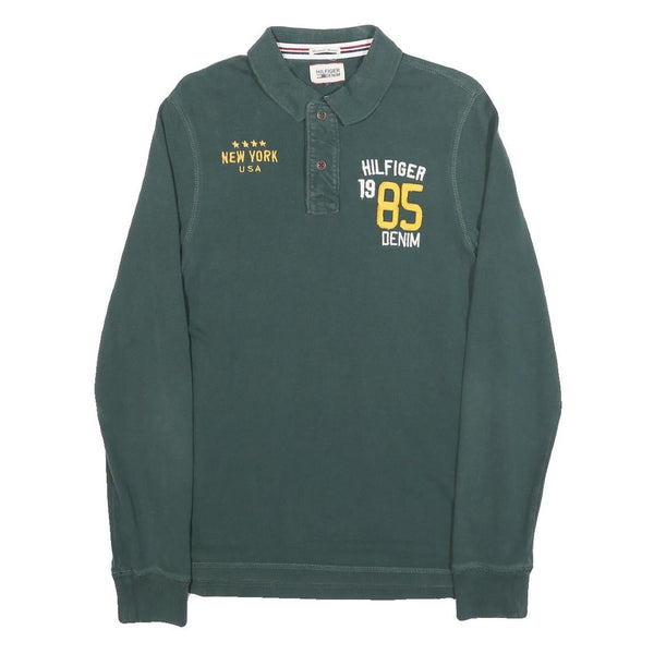HILFIGER DENIM Mens Green Long Sleeve Logo Print Polo Shirt M Cotton Blend