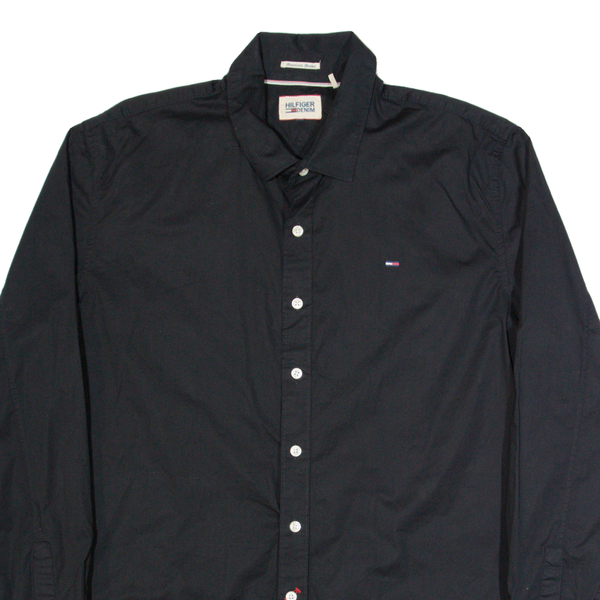 HILFIGER DENIM Mens Plain Shirt Black Long Sleeve M