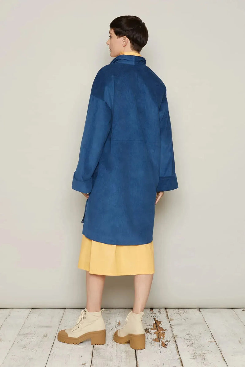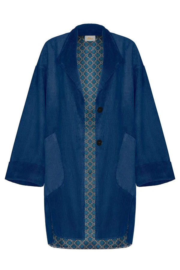 The Hilmar is a long, oversized jacket, falling to the mid-thigh. Oversized features make it iconic: large, patch pockets; side vents; a stepped hemline; and wide, turned-back cuffs. Beautifully lined, this jacket looks easy-going, and feels luxurious.