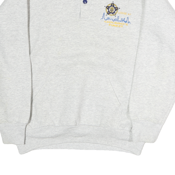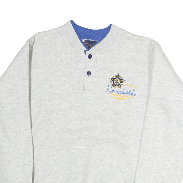 HILTON Womens Grey & Blue Chicago's Finest Crew Neck L Cotton Pullover
