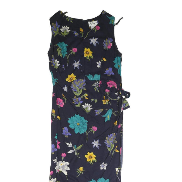 HLIX TAYLOR Womens Navy Blue Floral Midi Dress Cotton Blend Sleeveless Wrap UK