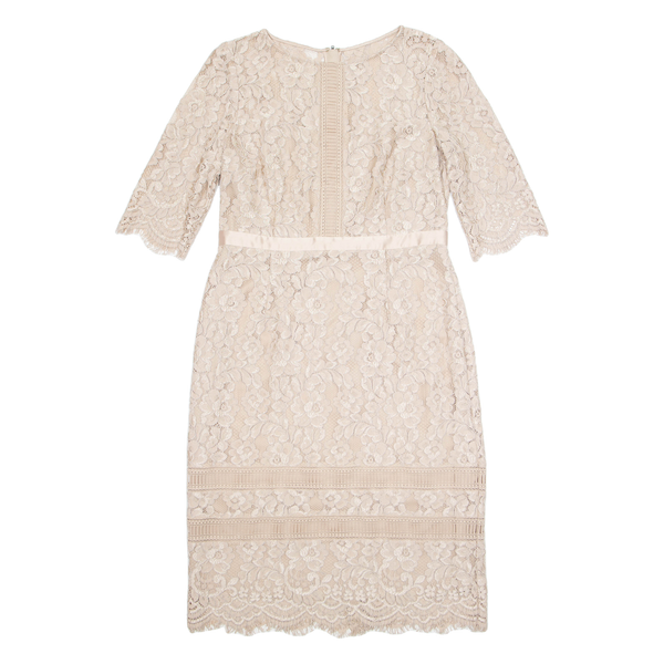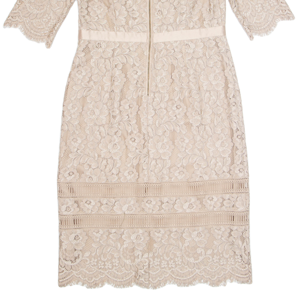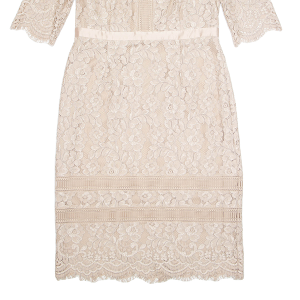 HOBBS LONDON Lace Womens Pencil Dress Beige Floral Midi UK 14