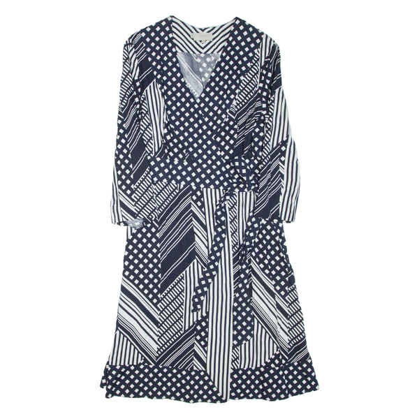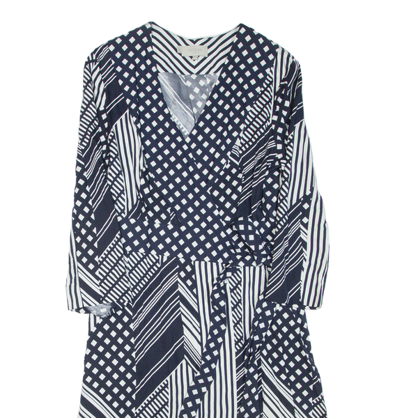 HOBBS LONDON Womens Wrap Dress Blue Viscose Geometric Long Sleeve Midi UK 10