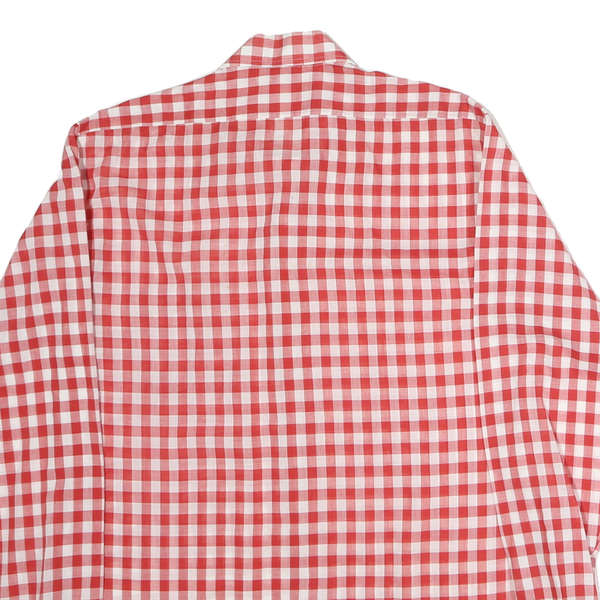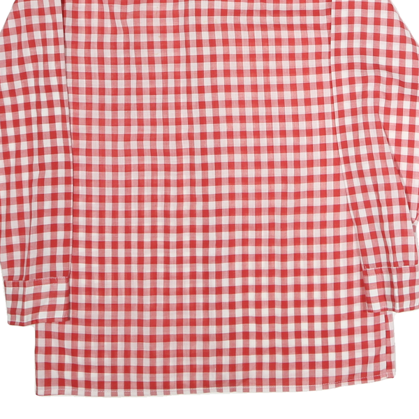 HOBBY Mens Red & White Check Shirt M Polyester Blend Casual Retro Long Sleeve