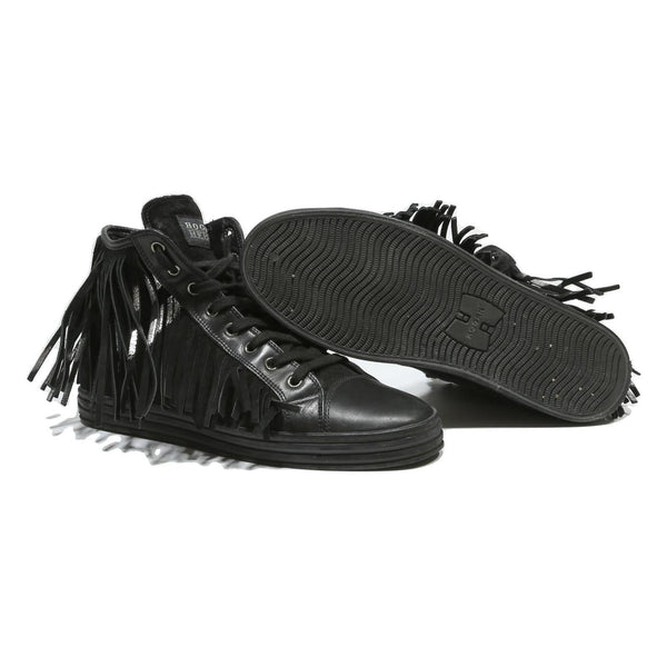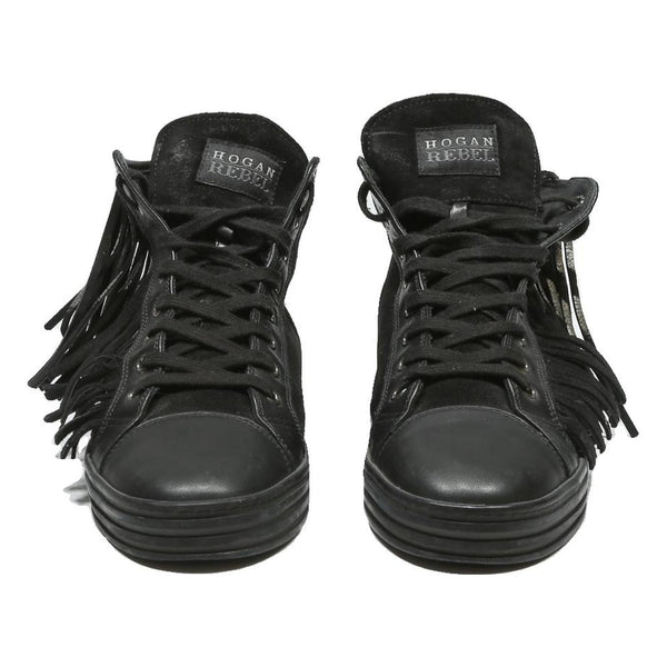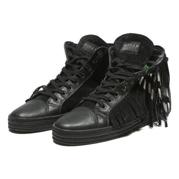 HOGAN Women’s Fringe Lace-Up Black Leather High Top Trainers UK 5.5 Stylish