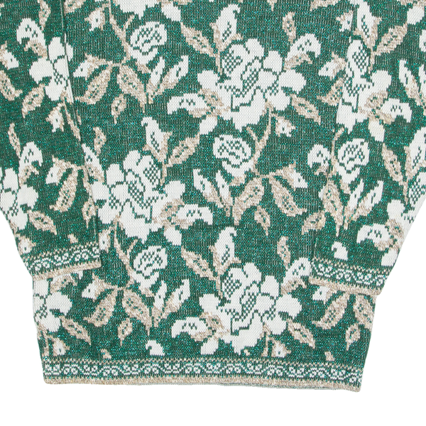 HOLIDAY TIME Glittery Womens Jumper Green Floral Tight Knit M