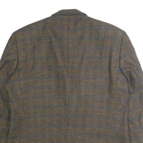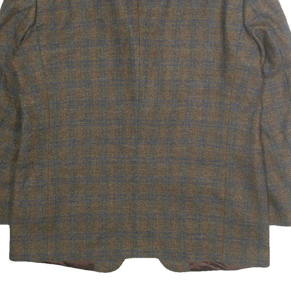 HOSTETTER MODE Mens Brown & Blue Wool Checked Classic Jacket XL Button Wool