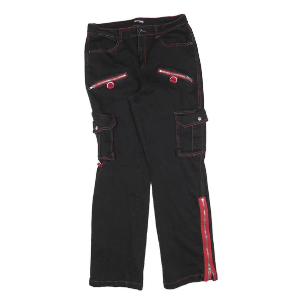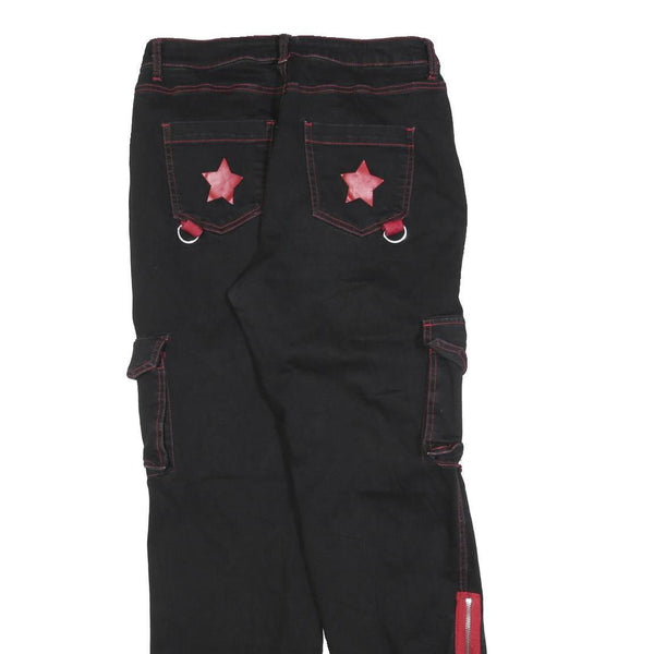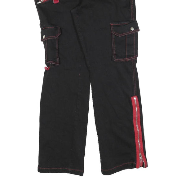 HOTTOPIC Mens Cotton Blend Black & Red Regular Cargo Trousers W30 L32 Stylish
