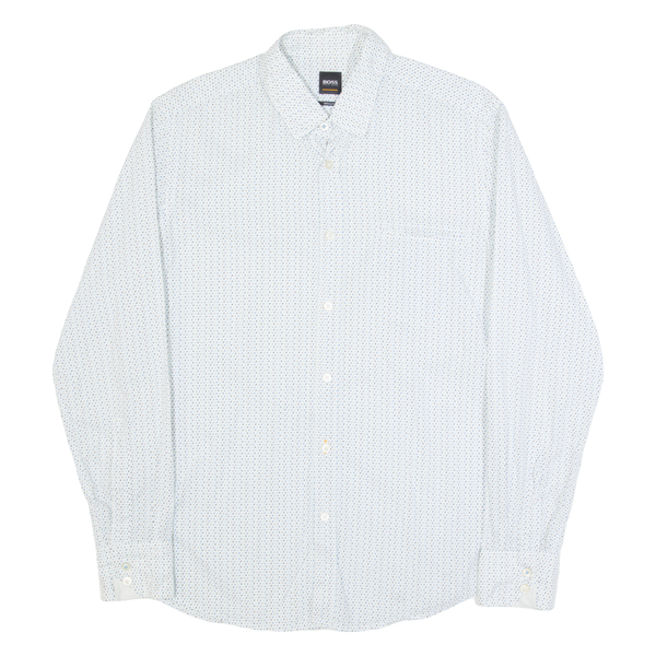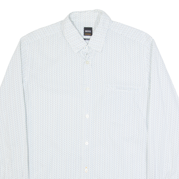 HUGO BOSS Mens Shirt White Spotted Long Sleeve L
