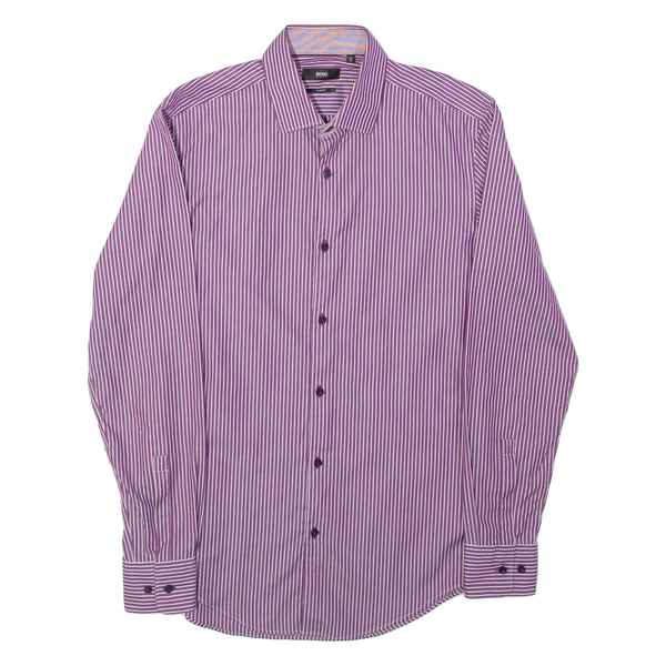 HUGO BOSS Slim Fit Juri Mens Shirt Purple Striped Long Sleeve M
