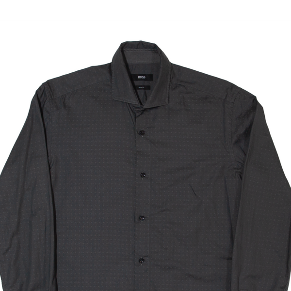 HUGO BOSS Slim Fit Ridley Mens Shirt Black Spotted Long Sleeve S