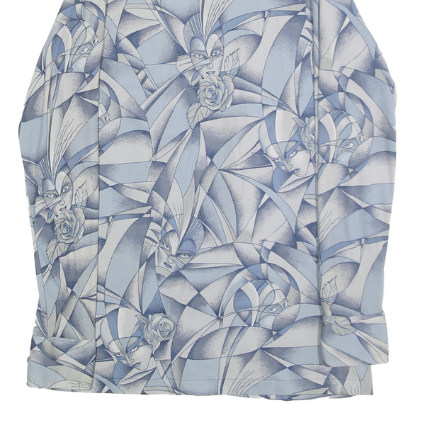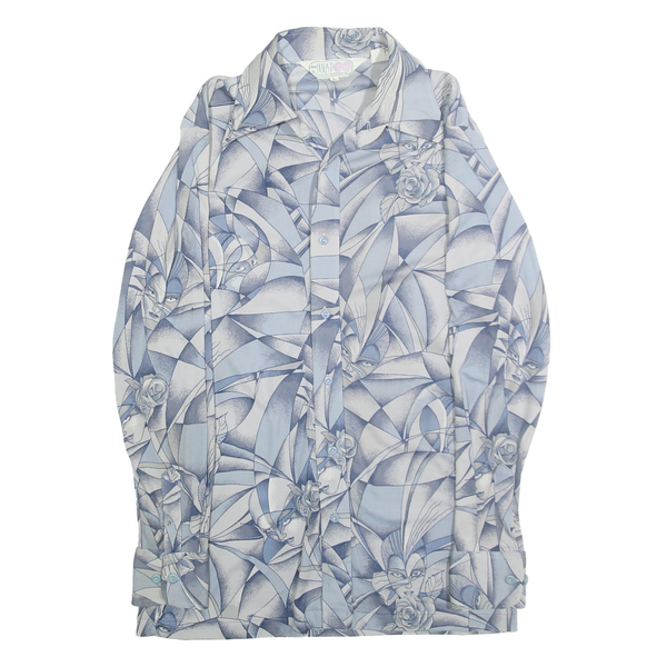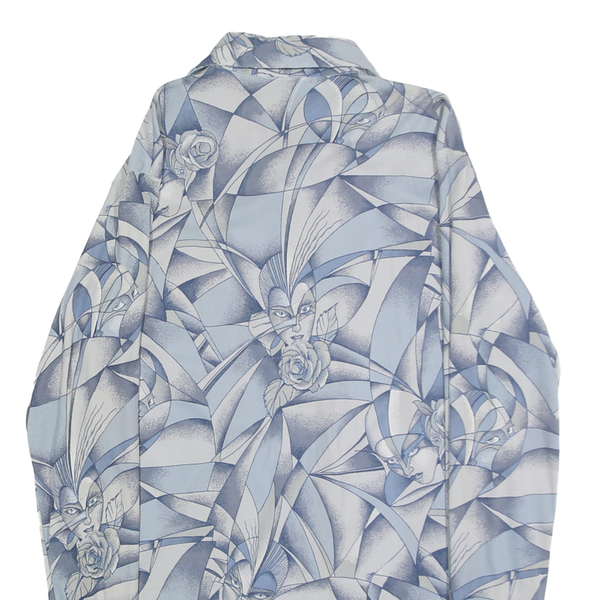HUKA-POO Mens Blue & Grey Abstract Pattern Nylon Shirt L Stylish Long Sleeve
