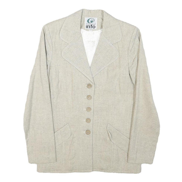 Info womens cream wool blend button jacket xxs woven classic blazer elegant