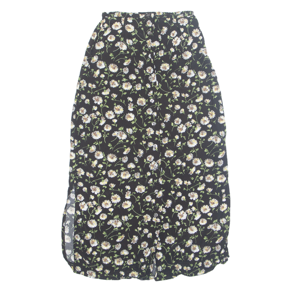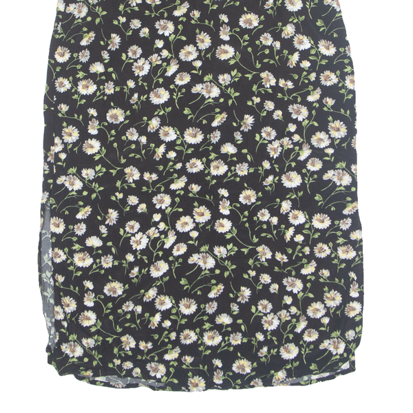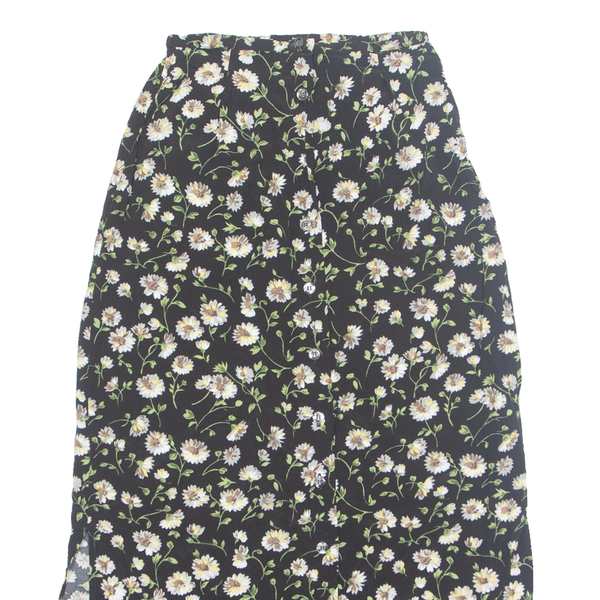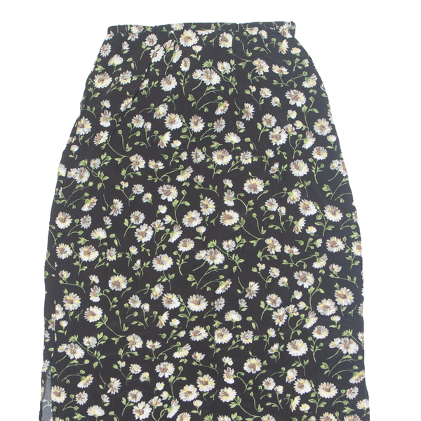 INNOVATION Side Slits Womens Straight Skirt Black Long 90s Floral XXS