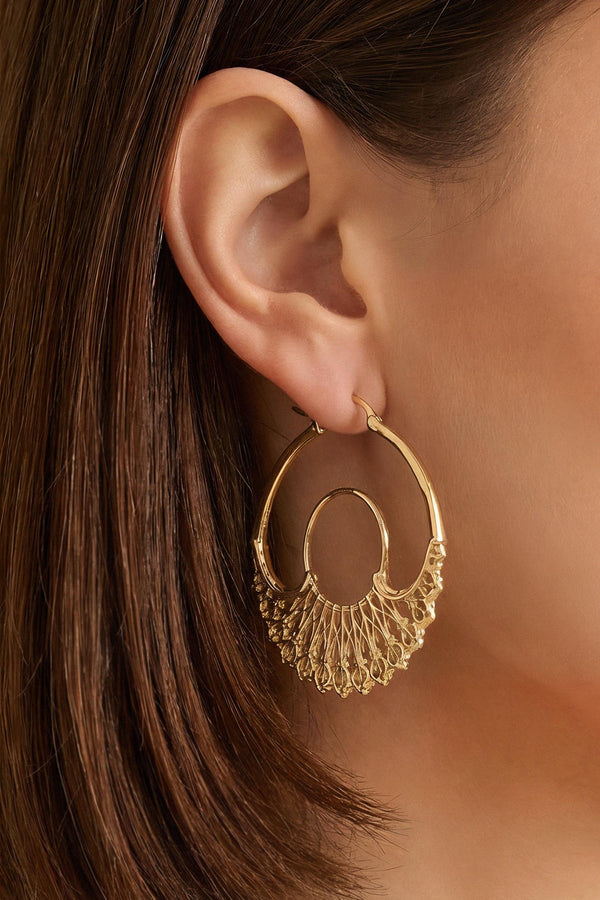 Cast from recycled brass, these hoops embrace our commitment to environmental consciousness. Each pair is meticulously plated with a heavy 18k gold finish, ensuring a timeless allure that lasts.