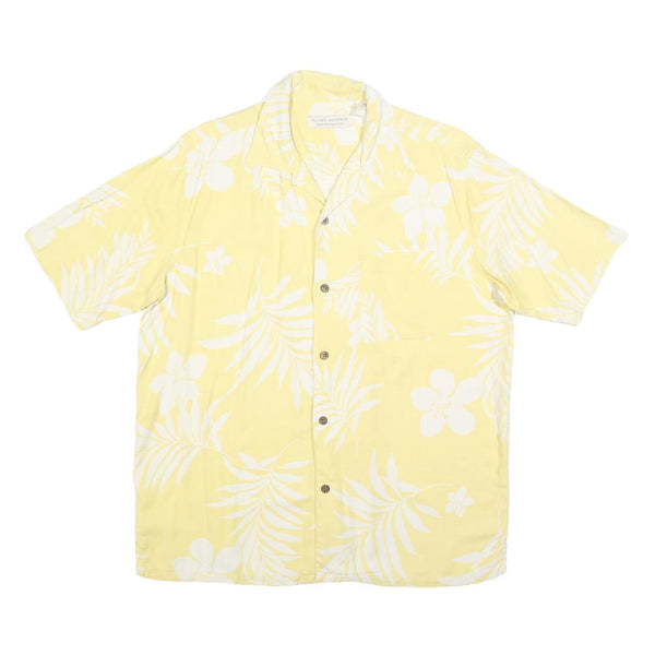 ISLAND REPUBLIC Mens Yellow & White Floral Silk Shirt M Summer Casual Hawaiian