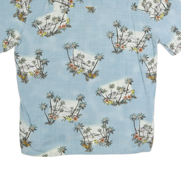 ISLAND SHORES Mens Blue Hawaiian Shirt L Cotton Tropical Palm Trees Casual