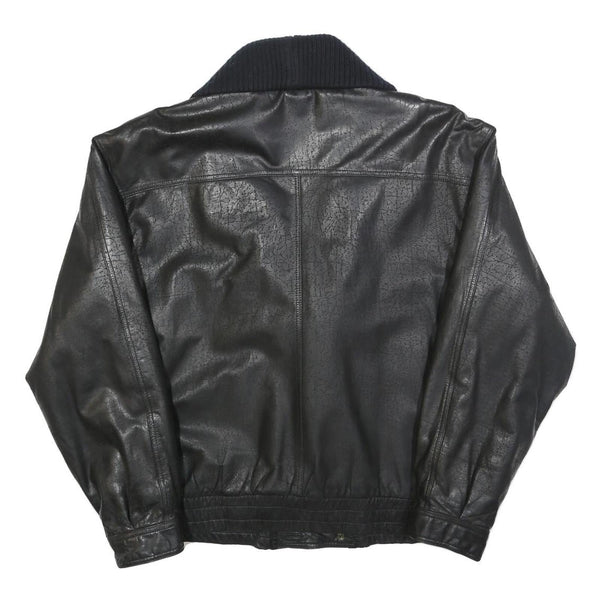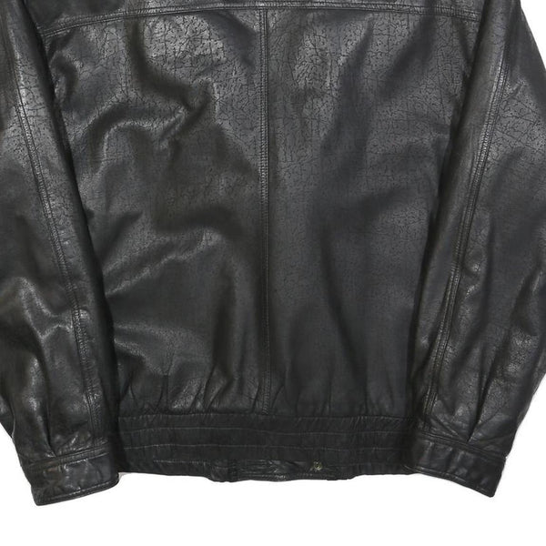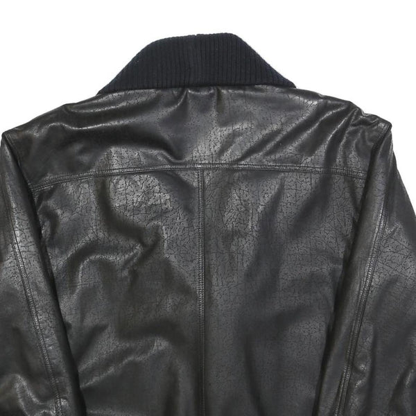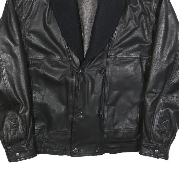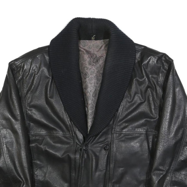 ITALLO Mens Black Leather Jacket L Button Shawl Collar Plain Stylish