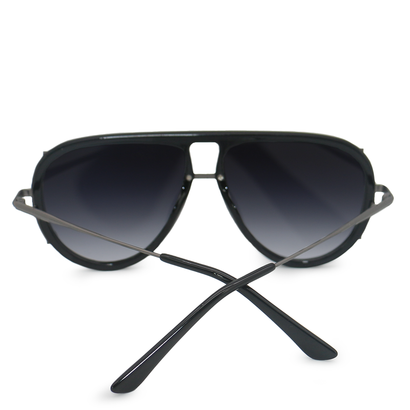 Ivy Luxe - Black Tangle-Free Round Aviator Sunglasses