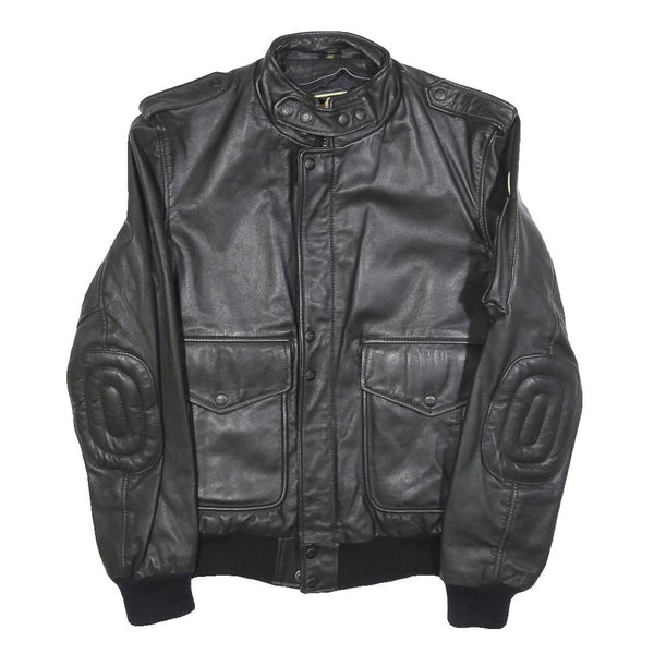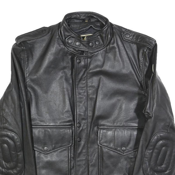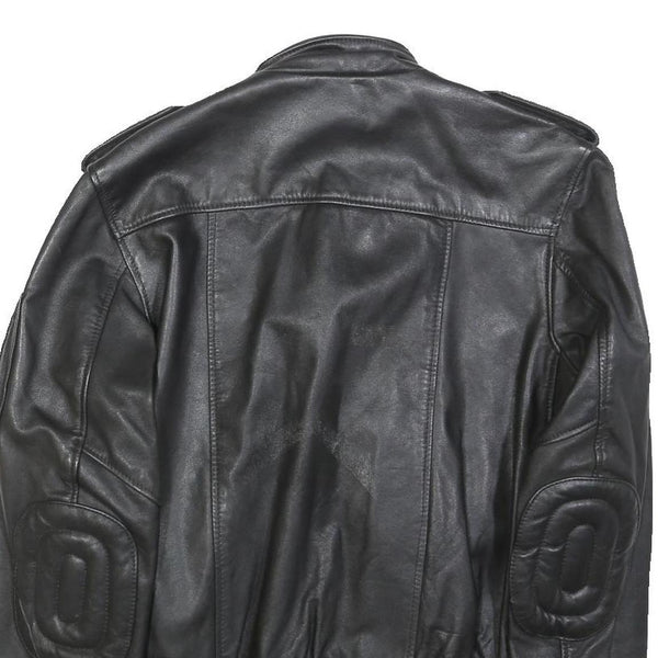 IXS Mens Black Leather Biker Jacket S Zip Motorbike Style Ribbed Cuffs