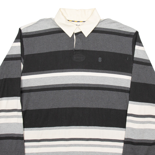 Home IZOD Mens Polo Shirt Black Striped Long Sleeve XL