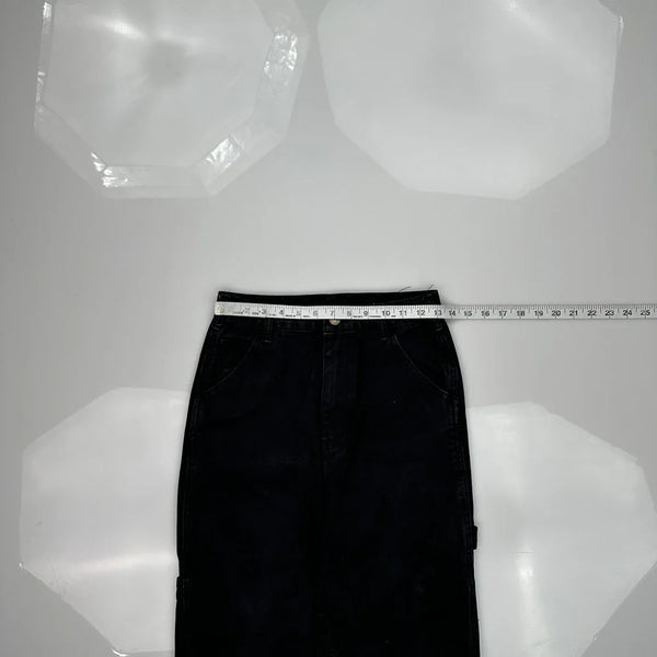 Black Cargo Pants With Multiple Pockets, Slight Wear Visible.