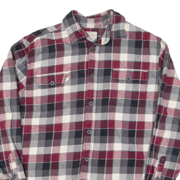 JACHS Mens Flannel Shirt Red Check Long Sleeve L