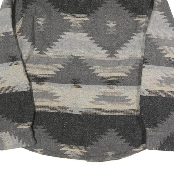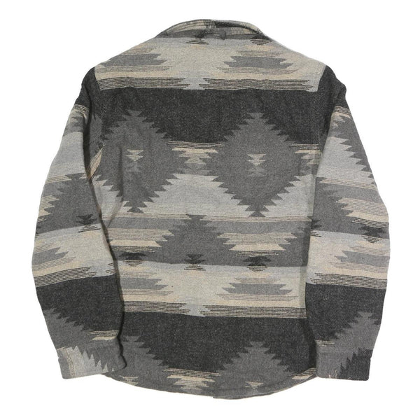 JACHS Mens Grey & Beige Pattern Cotton Blend Shirt S Button Long Sleeve Casual