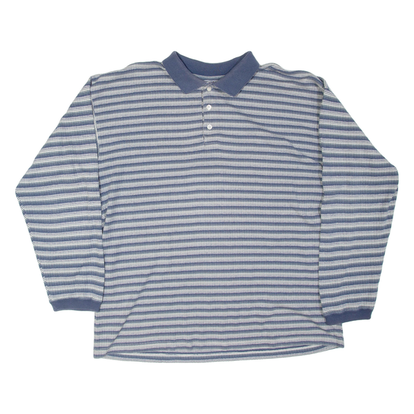 JACK MORGAN Mens Polo Shirt Blue Striped Long Sleeve XL
