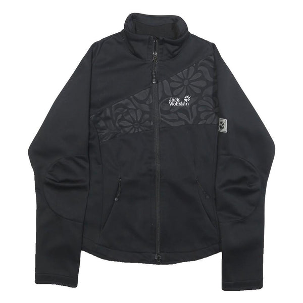 Jack wolfskin womens black floral polyester jacket uk 10 zip outdoor sportswear