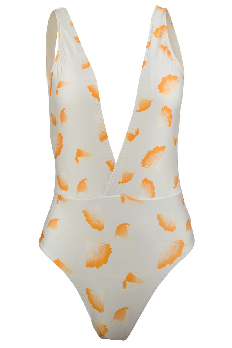 Jacky deep plunge one piece swimsuit - ginkgo ivory