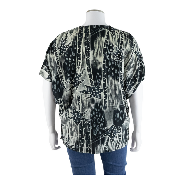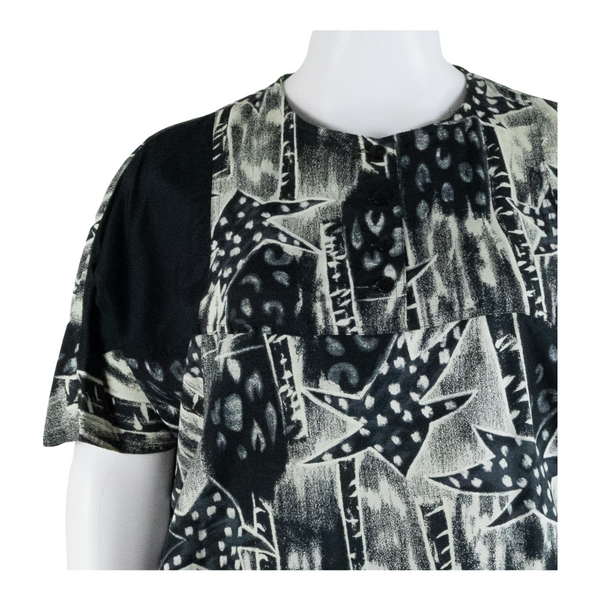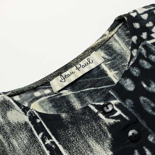JEAN PAUL Womens Printed Blouse Black 90s Linen Crazy Pattern UK 14