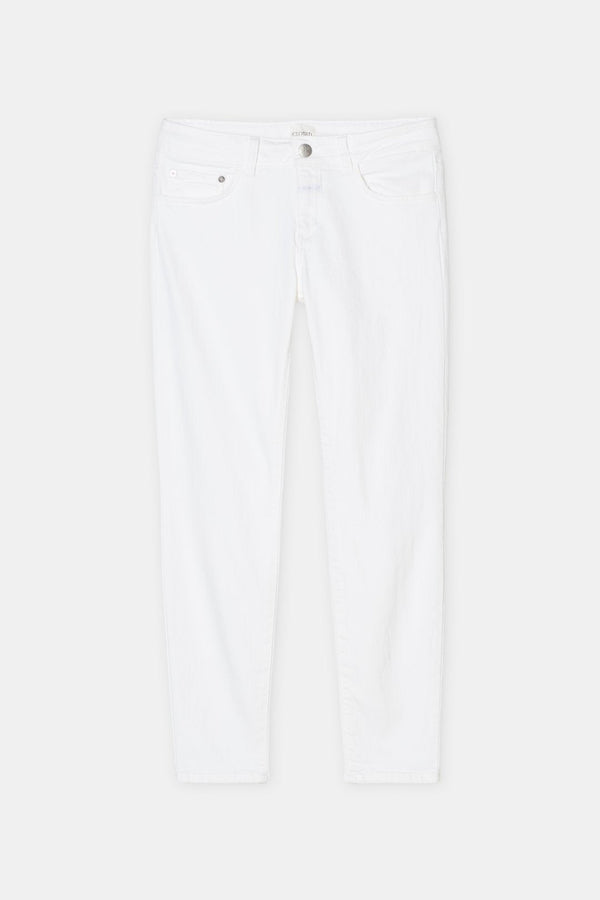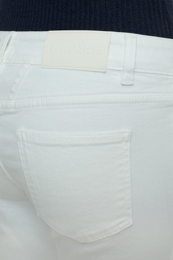 Made from lightweight, ecru-white comfort denim (10 oz.) from the traditional Candiani weaving mill in Italy: Style Baker in a slim fit with a mid-rise waist and cropped length. With high-quality stretch fibres for improved comfort. Made 100% in Italy.