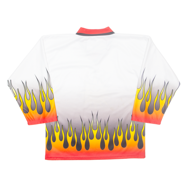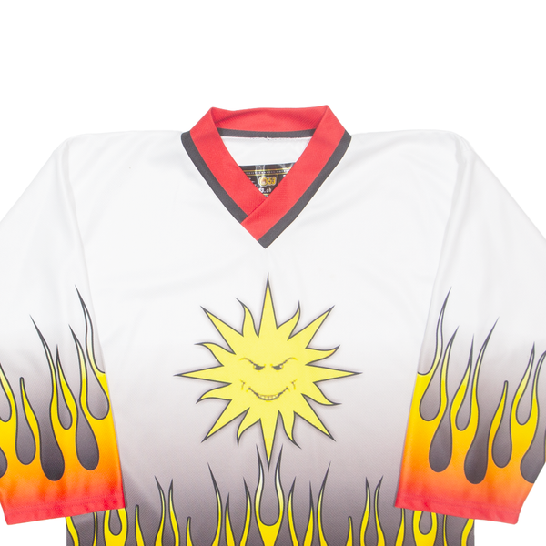 JERSEY53 Flames Sun Mens Jersey White 3/4 Sleeve V-Neck S