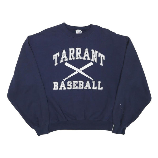 This men's sweatshirt from Jerzees is crafted in a deep navy blue shade. The front prominently features white printed text reading 'TARRANT BASEBALL' along with two crossed baseball bats as a graphic element, giving it a sporty and casual vibe. The back is plain navy with no additional markings or prints.